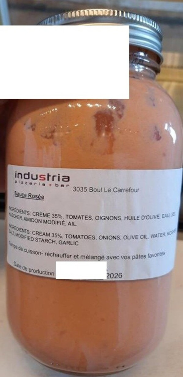 Industria pizzeria + Bar-carrefour Laval Various Sauces recalled due to Undeclared Allergen
