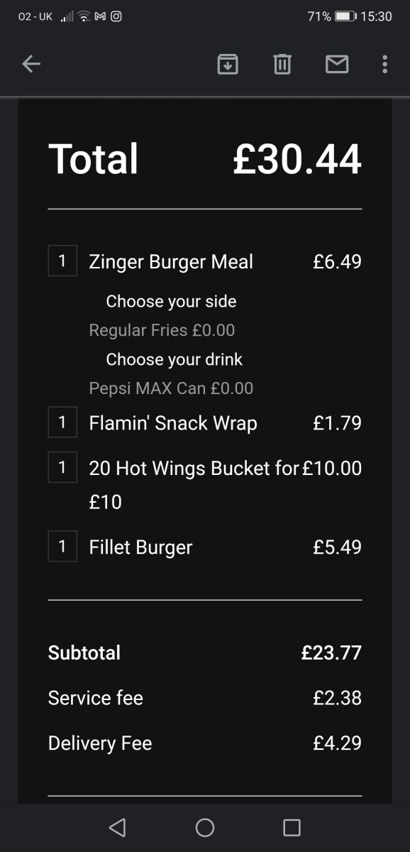 My partner and I ordered a burger each and a large bucket of 20 hot wings. An hour or so after eating, I became very unsettled and soon developed diarrhea and began vomiting. It's been 3 days and I am still stuck in my bed with nausea and diarrhea along with feeling very weak and light-headed.