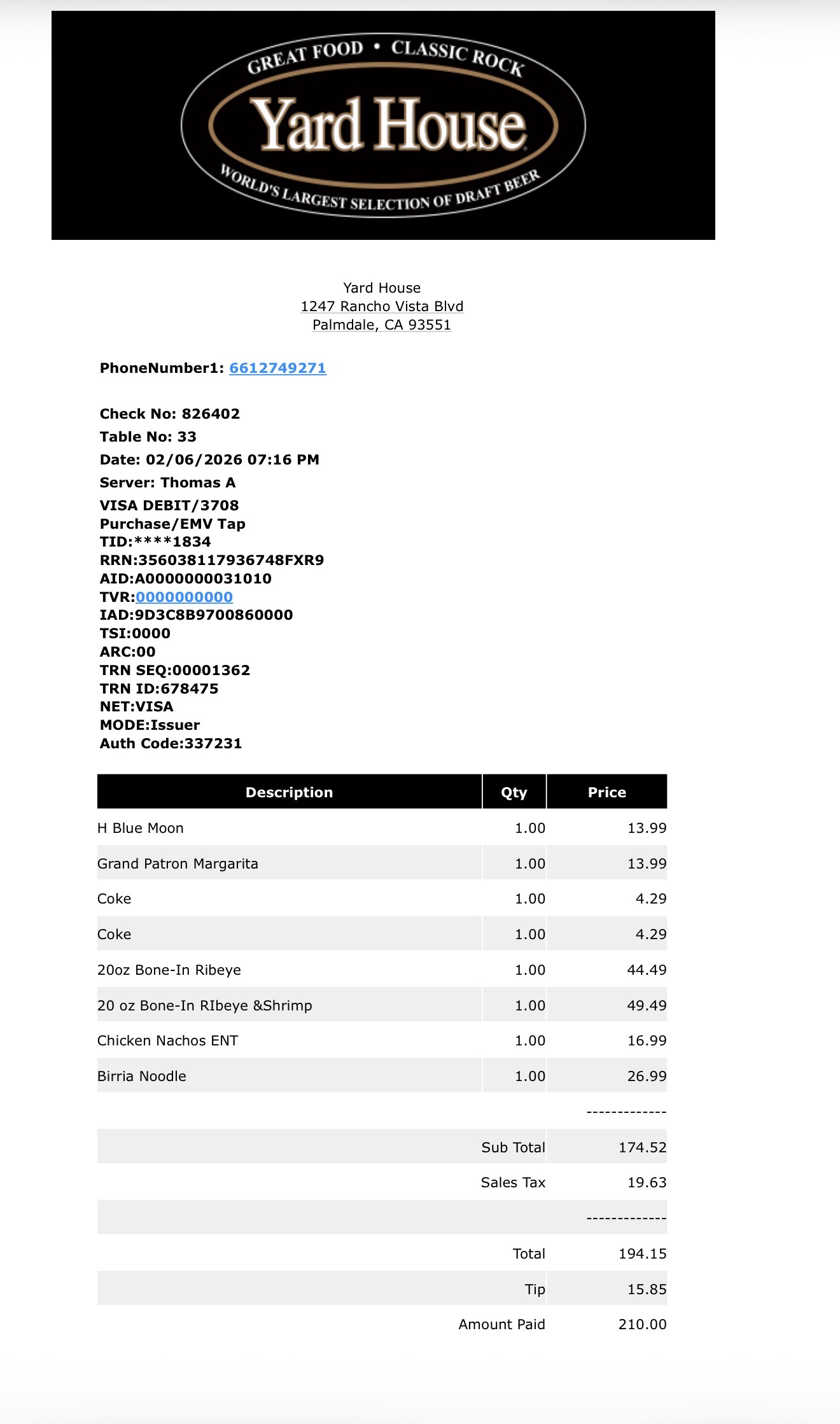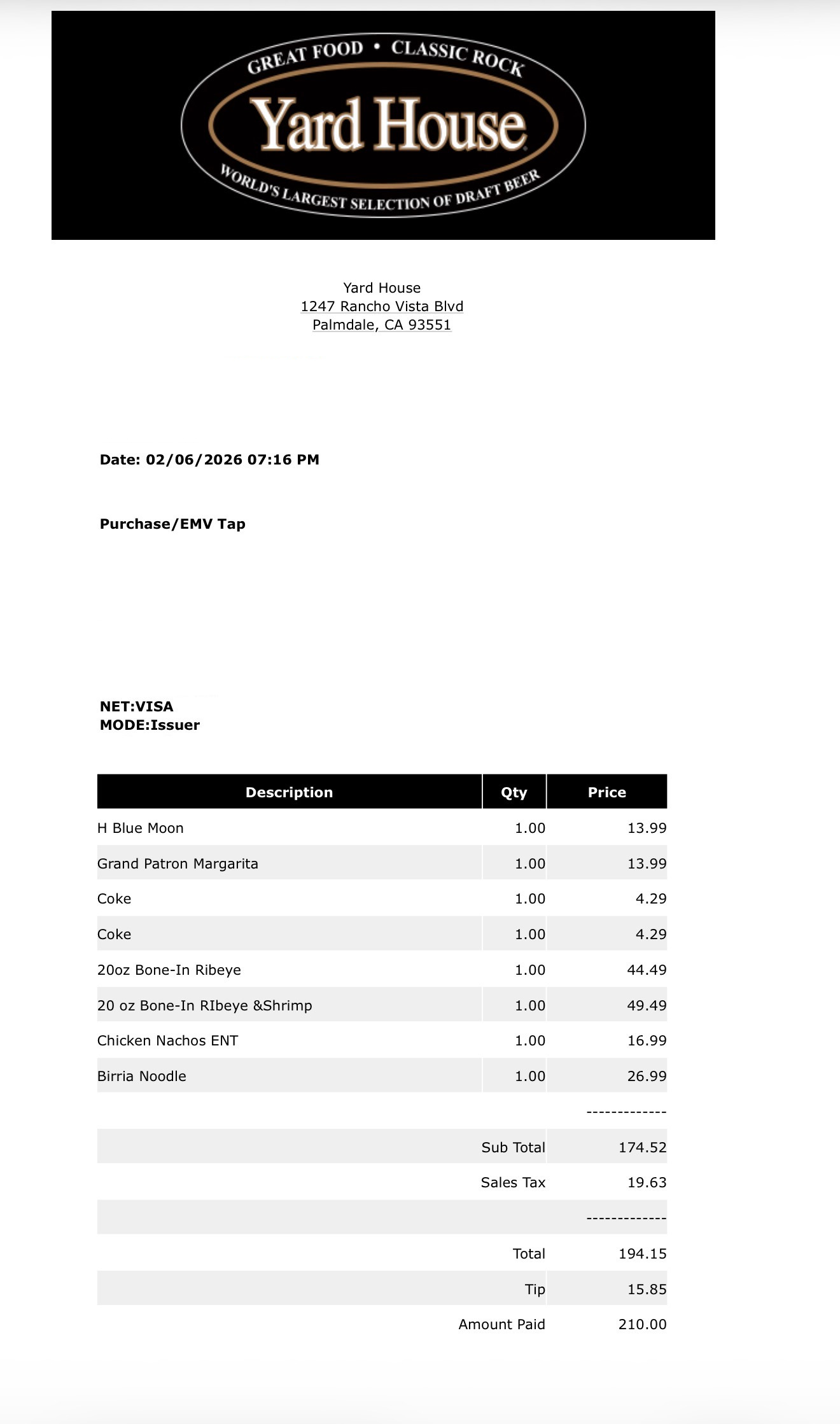 #yardhouse #palmdale #california #unitedstates #hühnchen