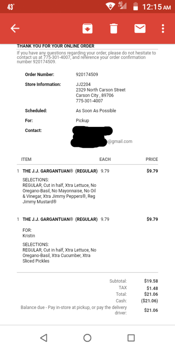 Wir haben Sandwiches online bestellt und riesige Mengen Mayonnaise bekommen, die wir nicht bestellt haben. Zwei von uns wurden zwei Tage lang sehr krank. Des ist dem Besitzer egal.