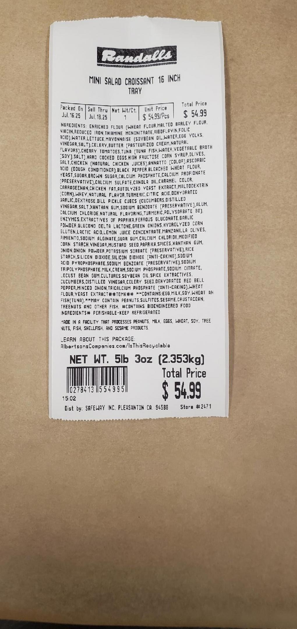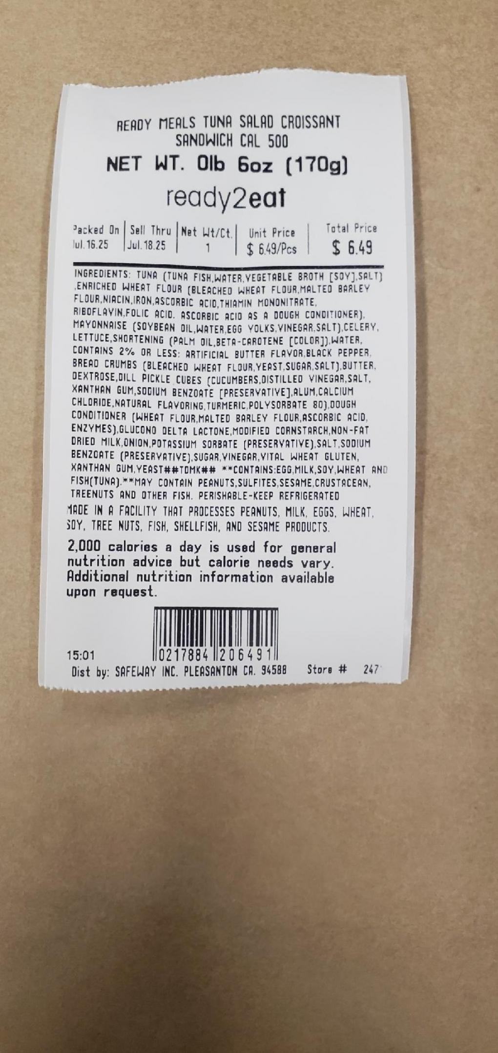 4) PRODUCT: RM SANDWICH TUNA SALAD CROISSANT SS COLD