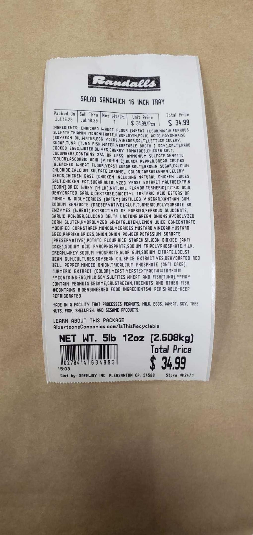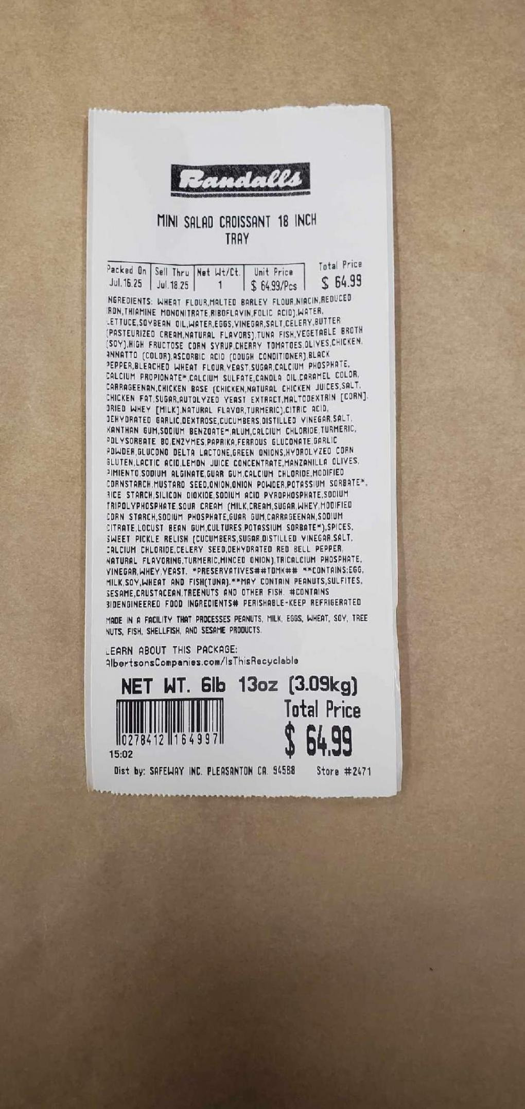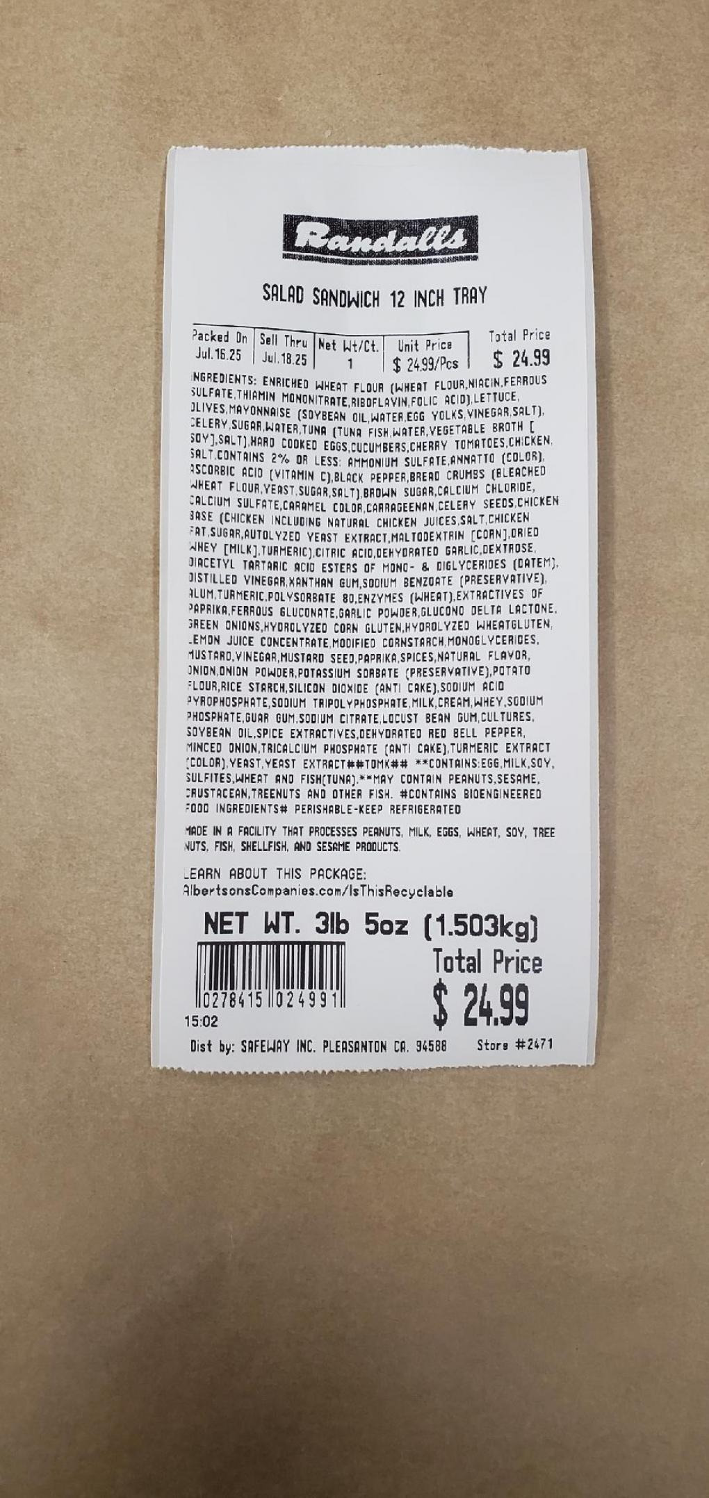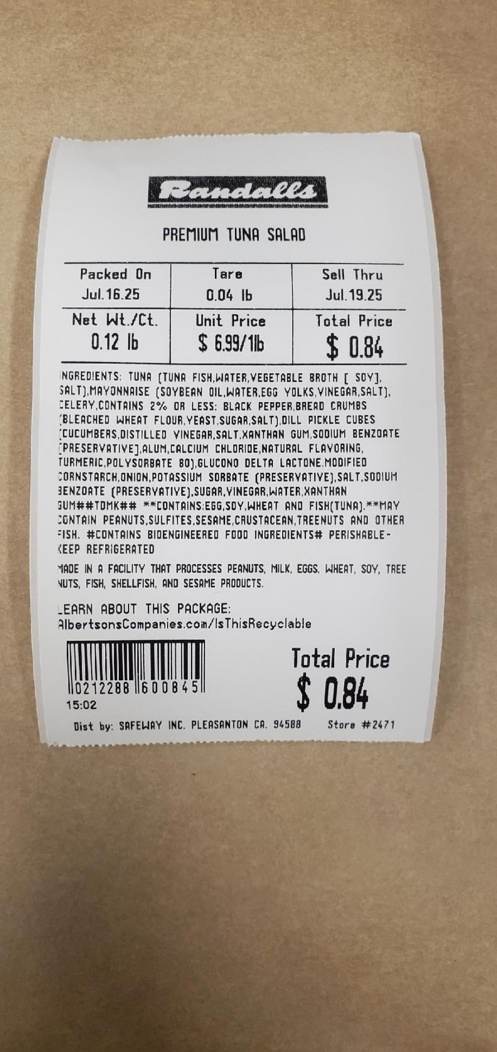 PRODUCT: Randalls Premium Tuna Salad