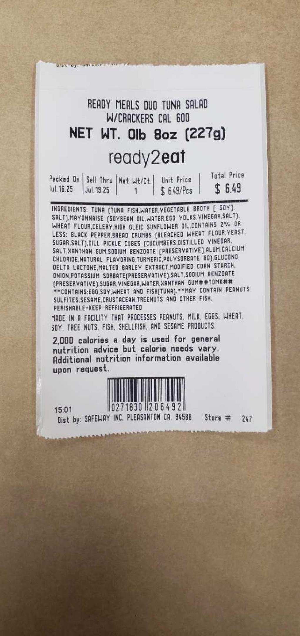 1) PRODUCT: RM DUO TUNA SALAD W/CRACKERS
