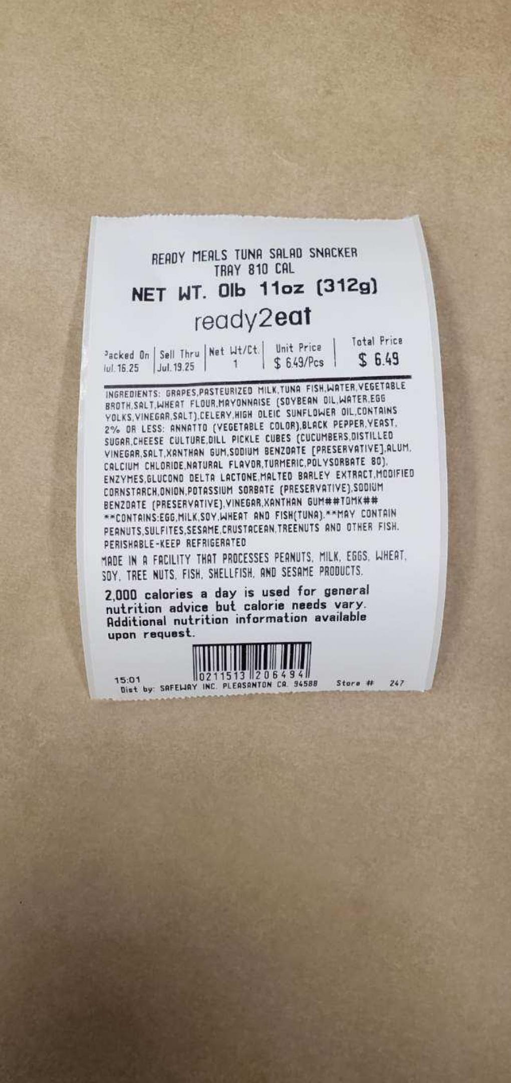 3) PRODUCT: RM SNACKER TRAY TUNA SALAD