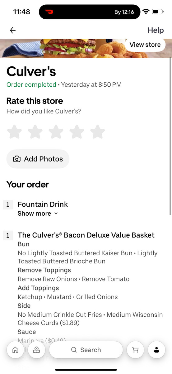 Bacon Deluxe Basket Illness - Culver's, Harwood Heights Illinois
