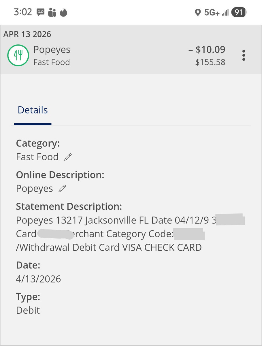 Toddler, Adult Sick After Meal - Popeyes, Jacksonville Florida