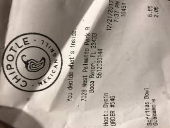 I went to Chipotle on December-21-2017 at around 7:30pm . I am a clean water , I juice and do most of my meal prep but I was so tired and wanted something quick without cooking so I stopped . I ordered…