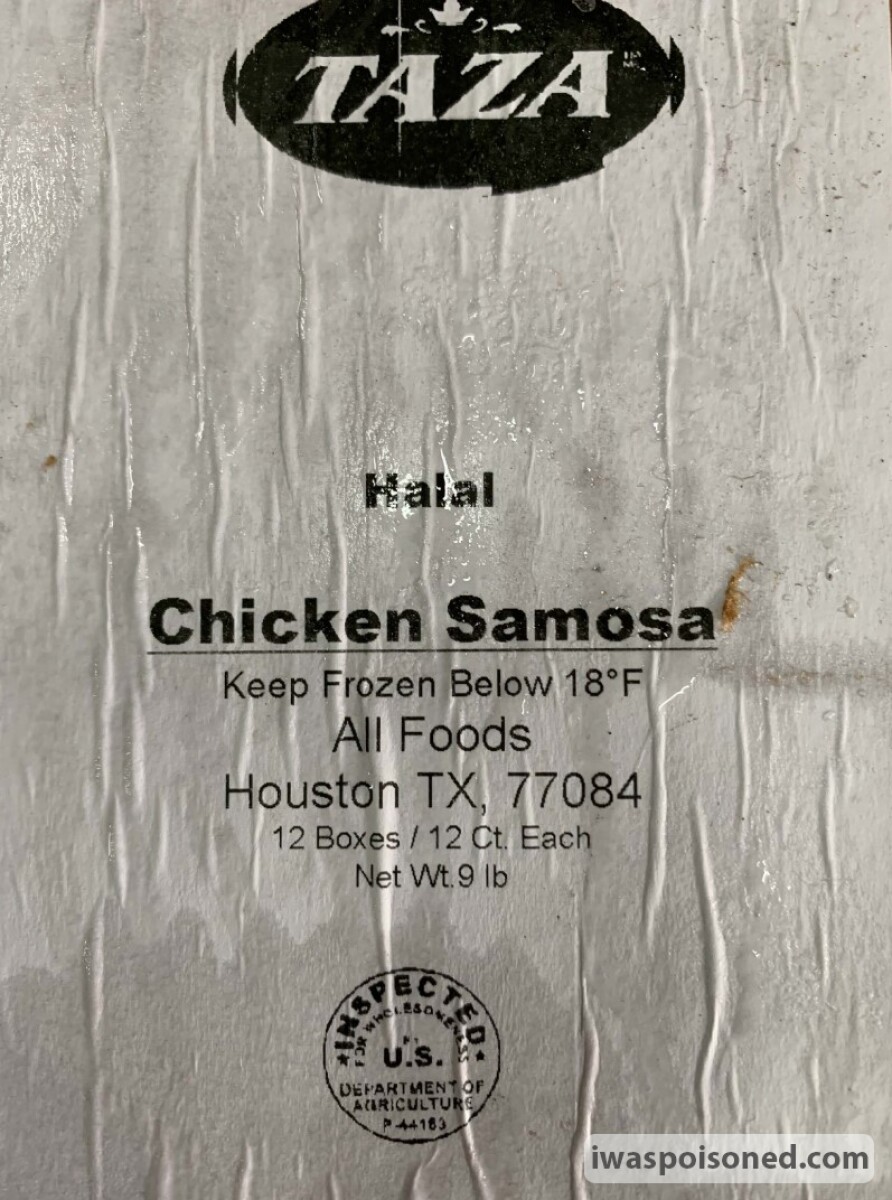 The FSIS announced the recall of approximately 675 pounds chicken samosas products by Hafiz Foods, Inc.