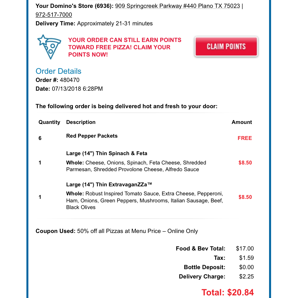 Domino's Pizza, West Spring Creek Parkway, Plano, TX, USA