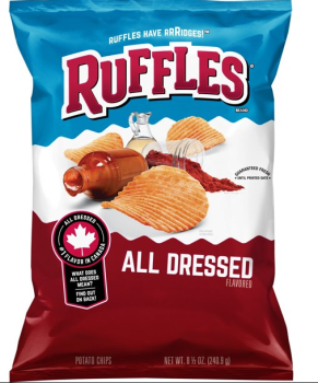 Ruffles todas as batatas fritas aromatizadas vestidas - lembrado devido ao leite não declarado