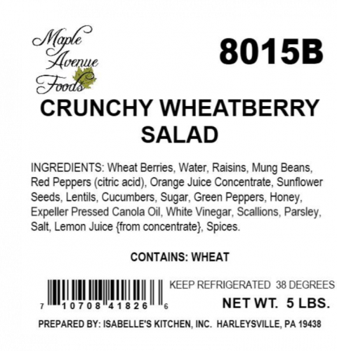 该产品装在白色塑料容器中,放在白色或棕色瓦楞纸盒内,品牌名称为"伊莎贝尔厨房"、"枫叶大道食品"或"国王"。召回产品通过位于白色产品标签右上角的商品编号和位于"使用期限"贴纸右侧的儒略历代码日期来识别。