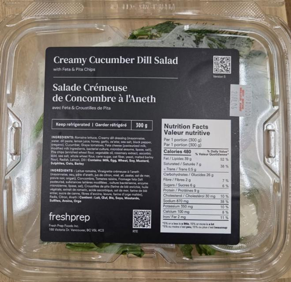 产品:freshprep - 奶油黄瓜莳萝沙拉配羊奶酪和皮塔薯片(300克)