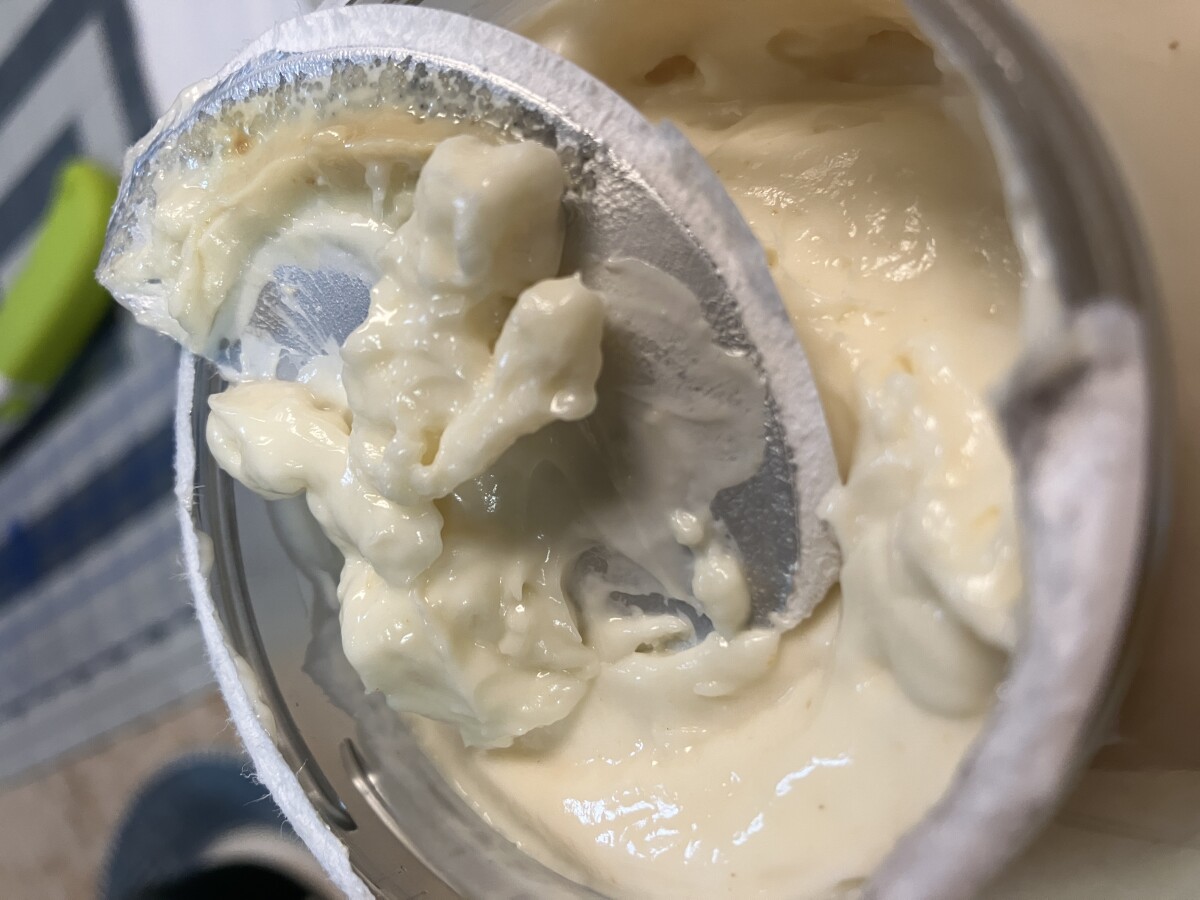 2 罐不同的 Miracle Whip,内侧纸板盖上有棕色的垃圾。闻起来也难闻。“使用截止日期” 为 2024 年 4 月 22 日,UPC 代码为 21000 02649。